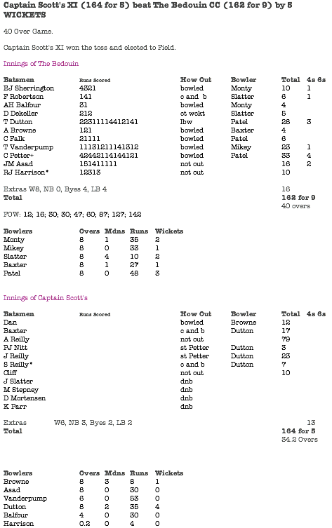 May 8: Captain Scott's XI